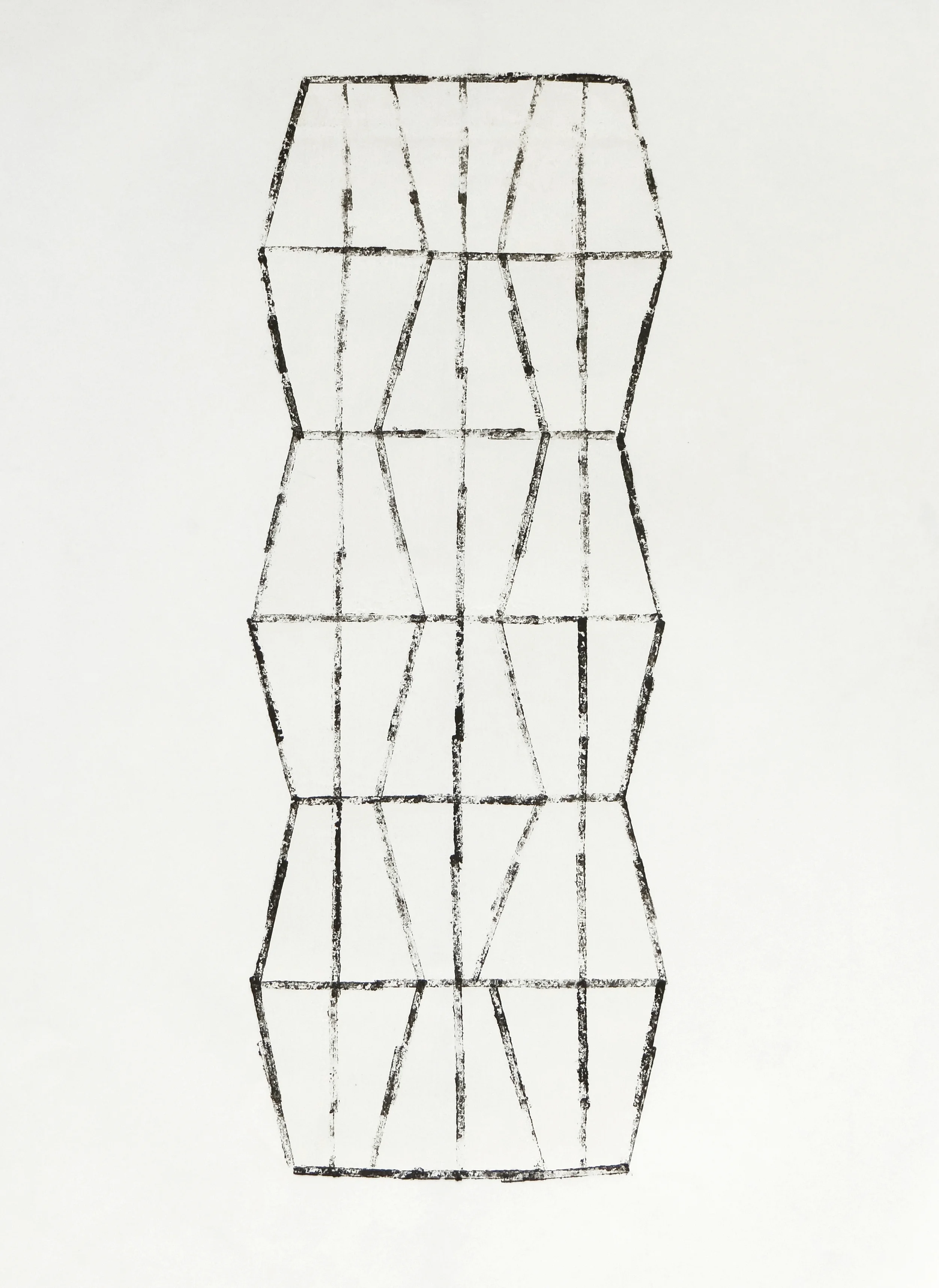 There is a disarming charm in the evidently homemade and handcrafted fabrications, combining a child-like inquisitiveness with patient methodical labor. They strive for order but inevitably fail to impose it: lines stray off at angles, ink stains seep into fabric, stacks spill or topple over. Perfection doesn’t interest the artist. Unlike the regimentation of the machine-made or manufactured, the shapes and patterns in Boele-Keimer’s works are of a more natural order, akin to the organic geometry we might find in a seedpod or a leaf. Through a language of tessellations, connections and repetitions the artist finds clarity and fragile balance.